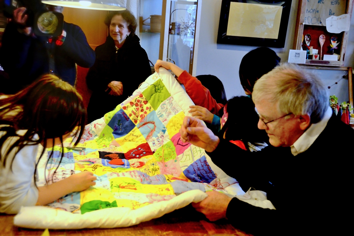 Hands, Hearts and Good Spirits produced a quilt showing love and support for Tohoku in memory of the 3.11 Earthquake. Info: tewassa.org