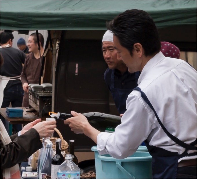 小川町埼玉 – 酒 – Sake tasting event in Ogawamachi Saitama. This sake is based on locally grown, organic ingredients. Sake master is watching his customers’ reactions to this year’s sake. The one I tasted was crisp, clear and perfect. ©Hans Nagl