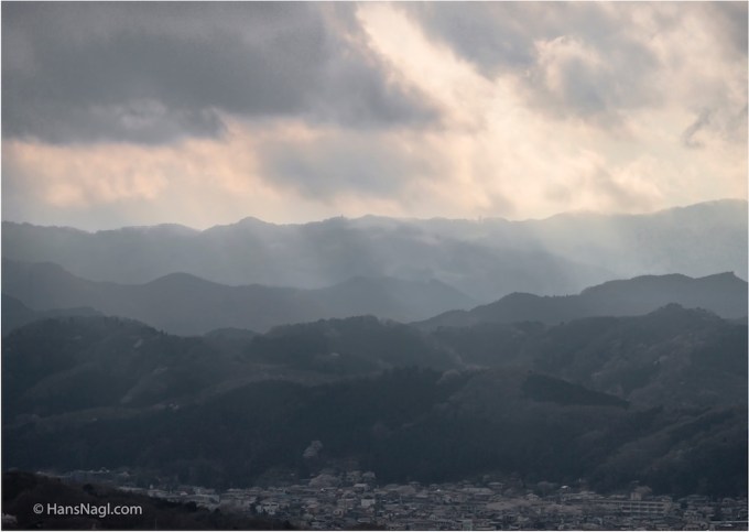 小川町埼玉 – 仙元山ハイキング – Mountain view seen from Mount Sengen in Ogawamachi, Saitama towards Chichibu. The weather could not decide if it should be sunny or rainy. ©Hans Nagl